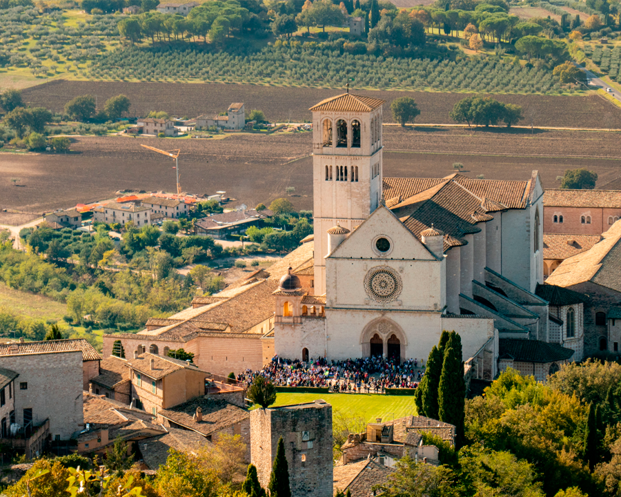 In the morning, you will visit the lower city. The Basilica of St. Mary of the Angels stands at the foot of the hill of Assisi over the Porziuncola – Saint Francis’ Church, given to him by the Benedictine monks.